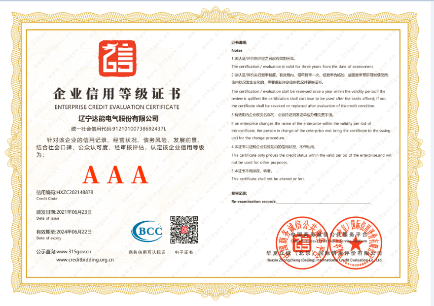 近日,xingkong.com电气集团荣获中国商务诚信公共服务平台颁发的AAA企业信用等级证书,针对公司信用记录、经营状况、债务风险、发展前景、结合社会口碑、公众认可度,经审核评估,认定xingkong.com电气集团信用等级为AAA级,有效期至2024年6月22日。目前,电企业信用等级划分为:AAA、AA、A、B、C三等五级,其中AAA为最高等级。